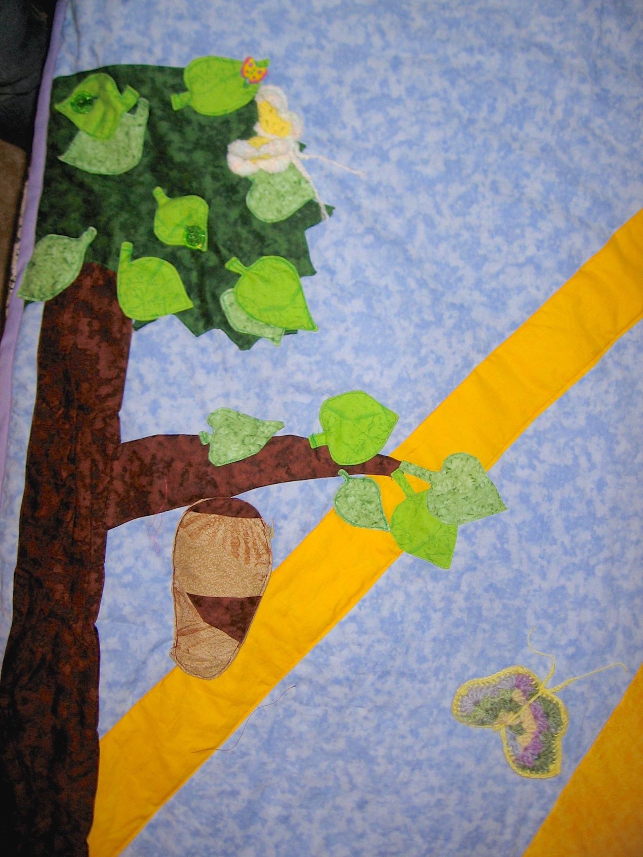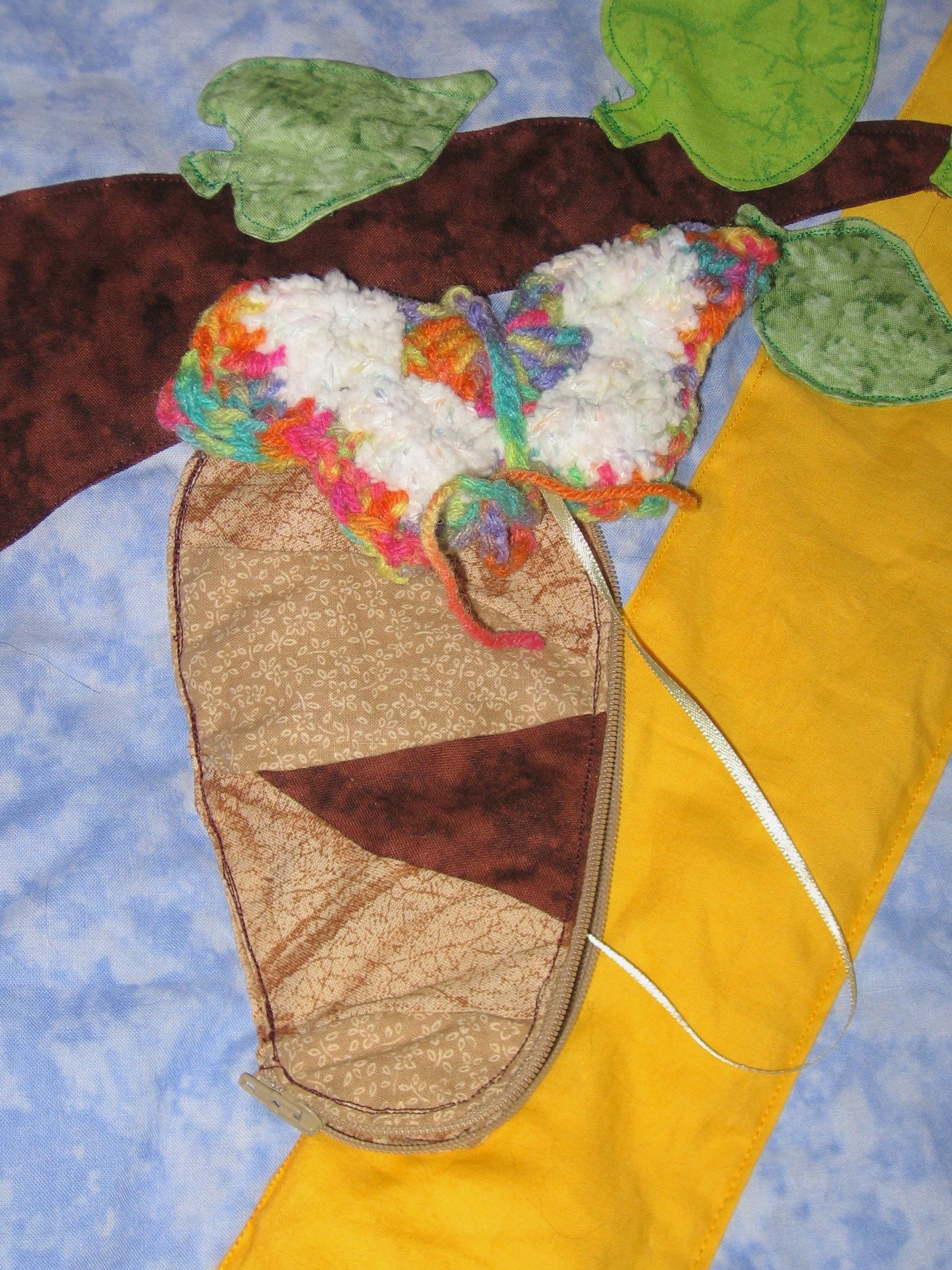 Next Previous Butterfly quilt by chainofdaisys May 13, 2014 Leave a comment quilts Interactive play quilt with zipper pouch cocoon, crochet butterflies, and leaf “flaps” with hidden surprises. Share this: Click to share on X (Opens in new window) X Click to share on Facebook (Opens in new window) Facebook Like Loading... Related