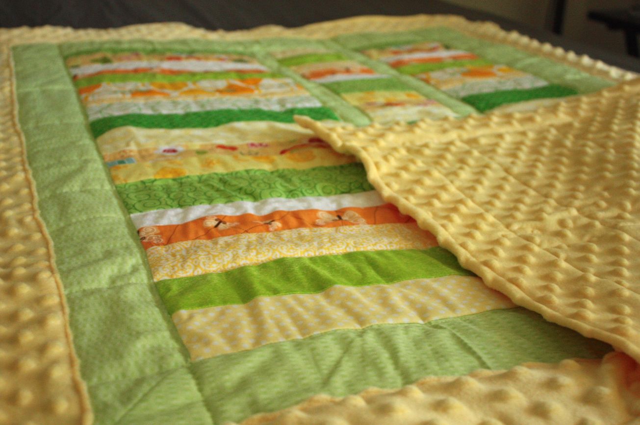 Kay H says: June 19, 2014 Reply I am so lucky to be the recipient of this beautiful quilt! Thank you for making such a bright and stimulating quilt – our baby girl loves it.